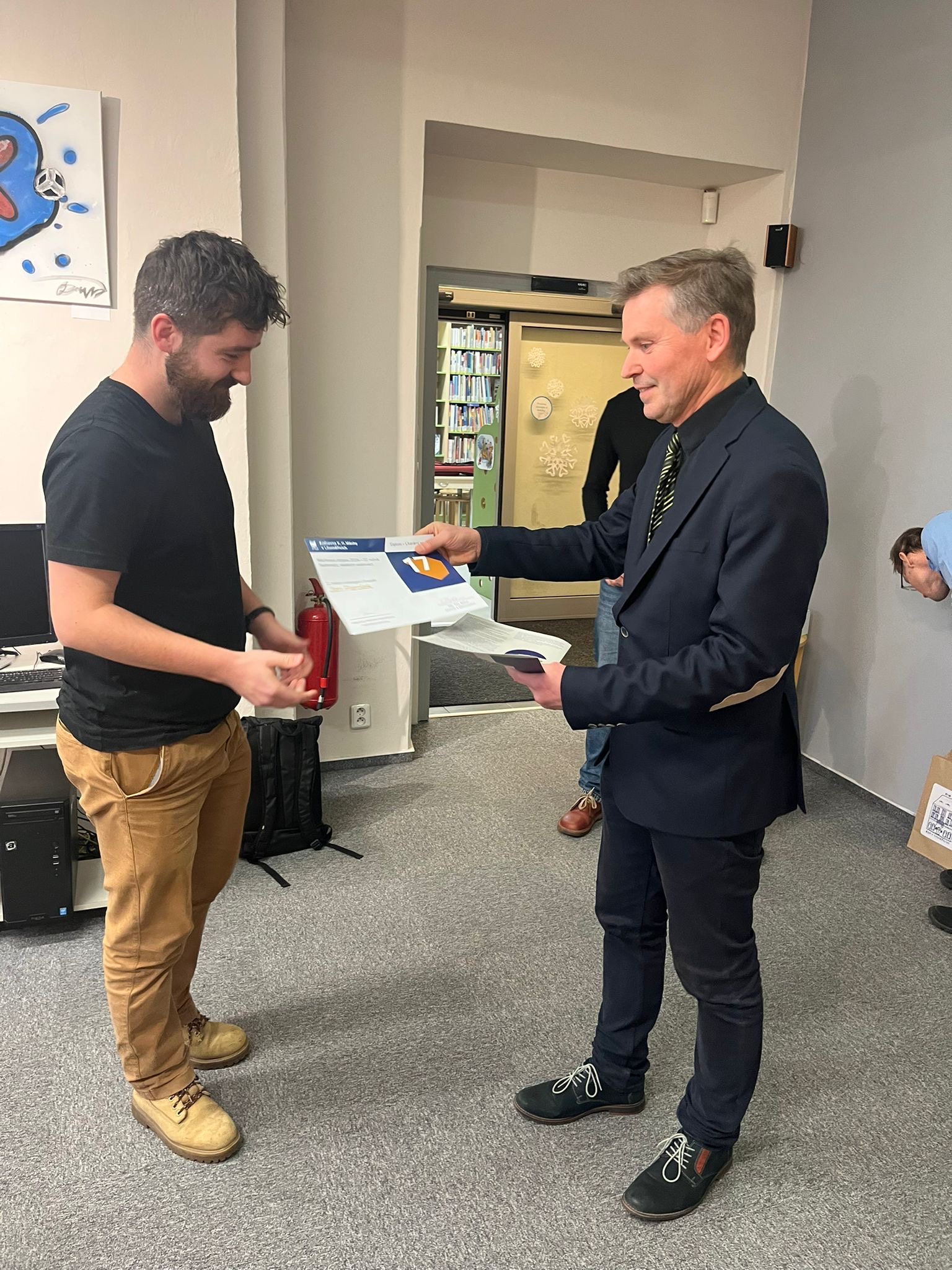 Obdarovaný, který u nás ještě nemá registraci, přijde s občanským průkazem a u výpůjčního pultu mu vytvoříme nové čtenářské konto.