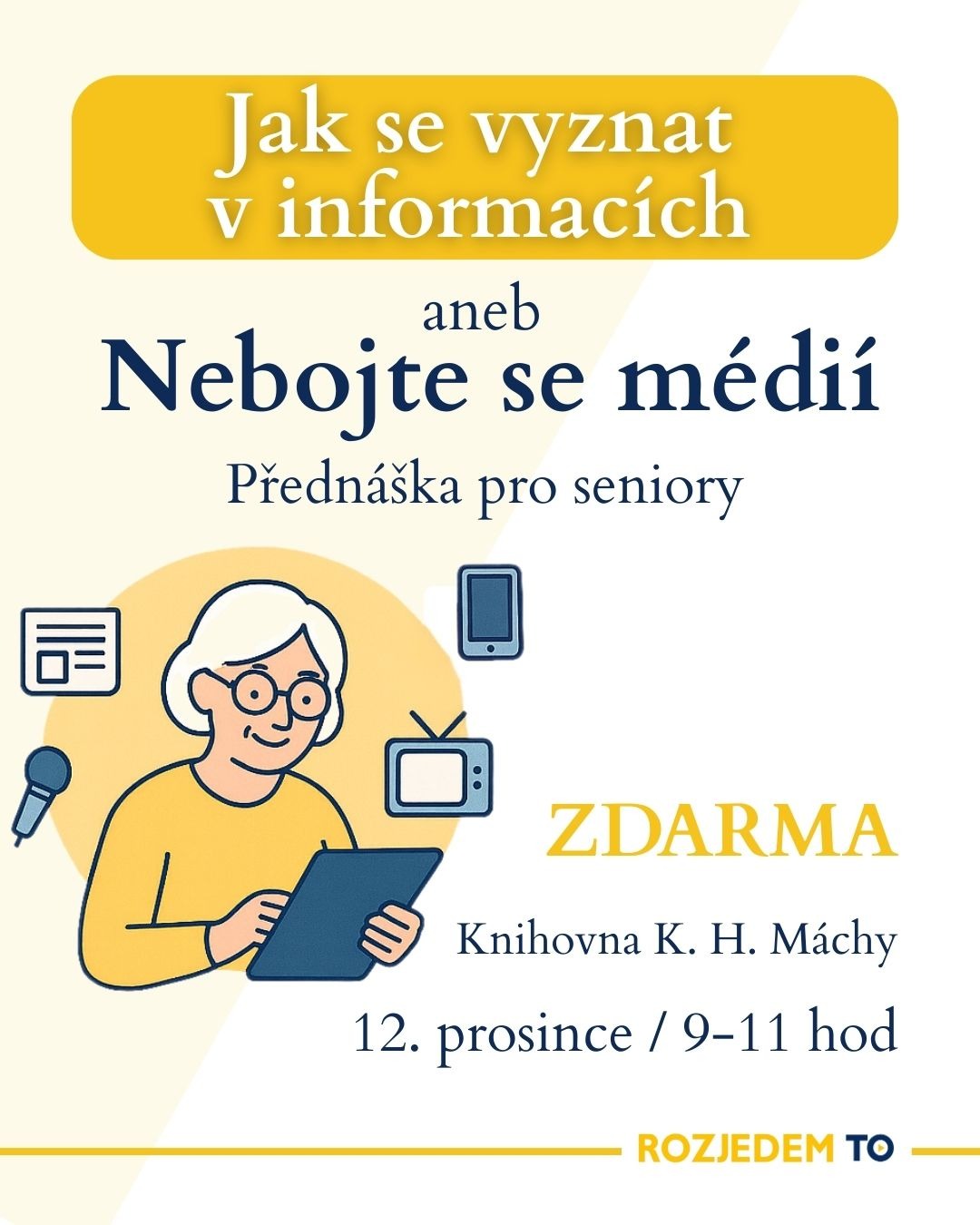 Přednáška je také pozvánkou na jarní workshop pro seniory "Bezpečně informační džunglí aneb Jak se vyznat v dnešních médiích", který na téma mediální gramotnosti naváže čtyřmi praktickými lekcemi.